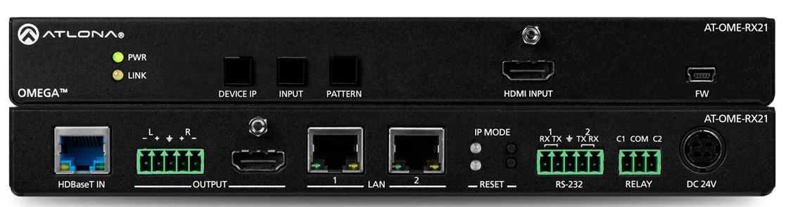 The Atlona AT-OME-RX21 is an HDBaseT receiver and 4K/UHD scaler with a local HDMI input. Part of the Omega™ Series of integration products for modern AV communications and collaboration, the OME-RX21 receives HDBaseT for video, control, and Ethernet.Read More