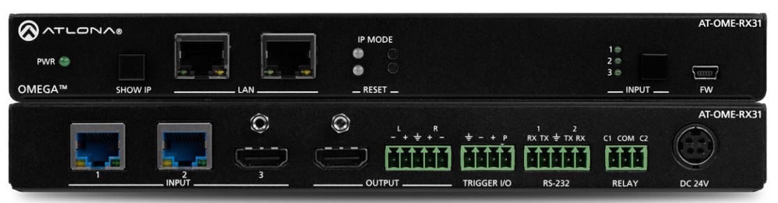 The Atlona AT-OME-RX31 is an HDBaseT receiver and 4K scaler with two HDBaseT inputs plus an HDMI input. The OME-RX31 is part of the Omega™ Series of integration products for modern AV communications and collaboration.Read More