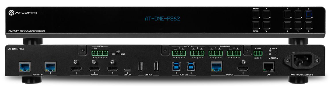The Atlona AT-OME-PS42 is a highly versatile, powerful 6×2 matrix presentation switcher with HDMI, USB-C, and HDBaseT inputs, and HDMI and HDBaseT outputs. The OME-PS62 is part of the Omega™ Series of integration products for modern AV communications and collaboration.Read More