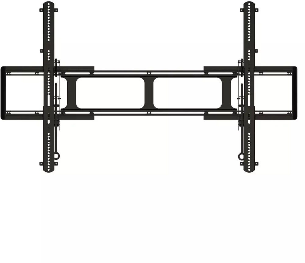 The Super Slim Fixed Position TV Wall Mount for extra large TVs 65" - 140" is engineered for versatility and strength, featuring an adjustable design that fits most TVs up to 300 lbs. The wall plate extends from 33" (84.9 cm) to 52" (134.4 cm), accommodating larger TV Vesa patterns up to 1100 x 700. This mount seamlessly integrates your TV just 2" from the wall, blending perfectly with your décor. For added security, you can easily attach a padlock (not included). The TV arms come with optional extension brackets, providing additional flexibility for different TV sizes. Adjustments are effortless and tool-free, thanks to the user-friendly design. Constructed on a solid steel frame, this sturdy wall mount ensures your TV is secure and level, providing the perfect viewing experience.Read More
